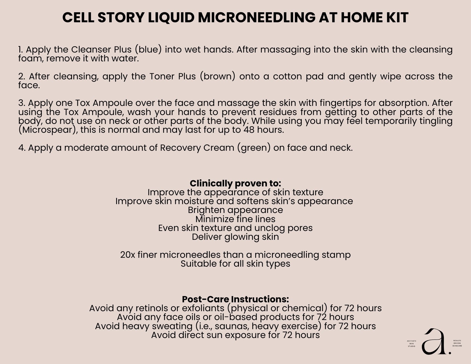 Synergetic skin care created for miracle results in the comfort of your home! This product includes one Perfection Tox Ampoule and a cleanser, toner, and moisturizer. Experience the transformative effects of our TOX Ampoule as 10,000 micro-needles delicately penetrate the skin and deliver the active ingredients directly to the basal layer of your skin for up to 72 hours - helping to improve the appearance of texture, fine lines and wrinkles and leaving you with insane glow. For best results follow immediately with the Hydrinity Sheet Mask.