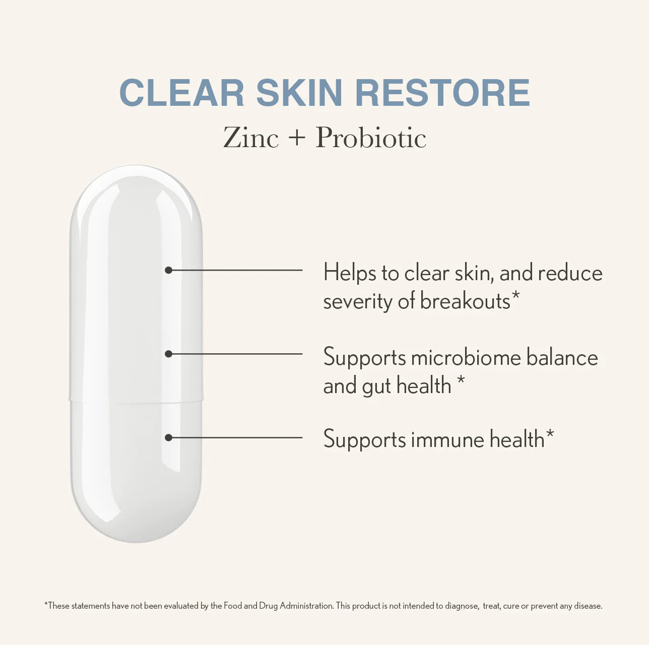 Designed by the #1 Professional Acne Brand, Clear Skin Restore contains Zinc and a proprietary Probiotic Gut-Skin Axis Blend to help clear skin while supporting overall health and wellness.*